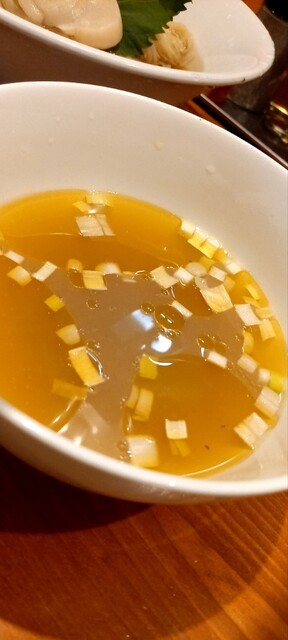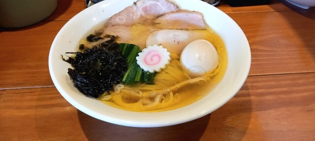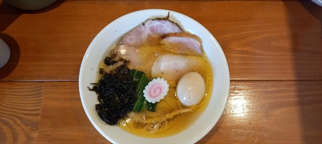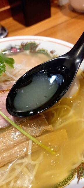 透明感のある塩スープ、表面に比内地鶏の黄金に輝く脂が蓋をし、スープを冷めにくくしてくれています。