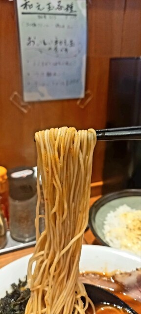 ストレート麺の中太麺を使用。スープに応じて、麺を使い分けるあたり、さすが屋号に「麺屋」をうたうだけあります。