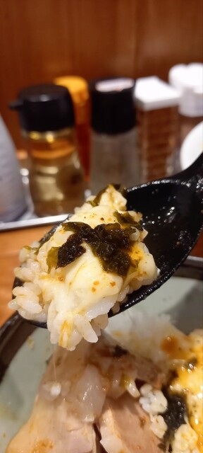 半ライスに残った麻婆をオンして味変。卓調の七味をかけて、オリジナル麻婆丼にしていただきました。うまいです!