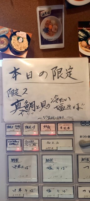 先客のメニューをリサーチすると、「帆立の金の塩そば」を食されている方が多いですが、小生は限定をオーダー。