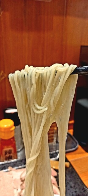 中華そば、味噌らーめんの平打ち麺と「食感」と「のど越し」が全く異なる麺。