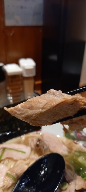チャーシューは厚みがあり、しかも口に入れると崩れるまで柔らかく煮こまれていて旨い!