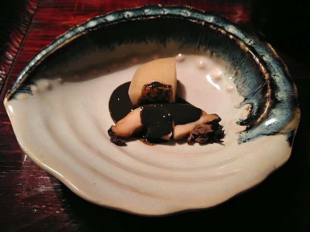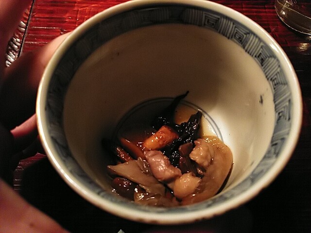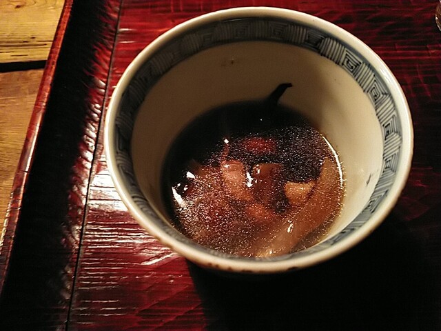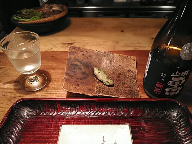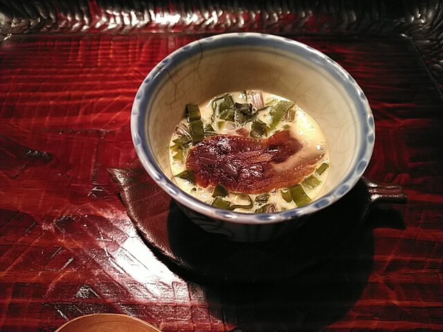 ひっつみ 醤油粕とカラスミを添えて ひっつみの弾力と味の強さに醤油粕とカラスミの塩味がいいバランスでした