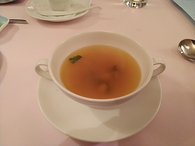 つぶ貝のコンソメスープ 仕上げ後 コンソメの旨味が熟されております。