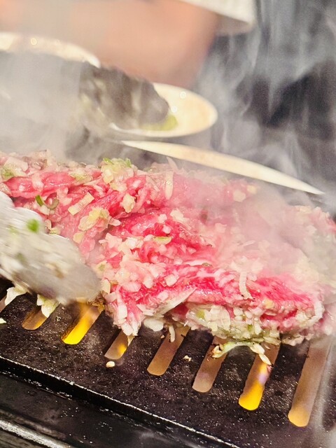 最初にでてきた、「和牛炙り焼き卵黄和え」は、アルミのカップに小さく切った和牛が山盛りでの提供。