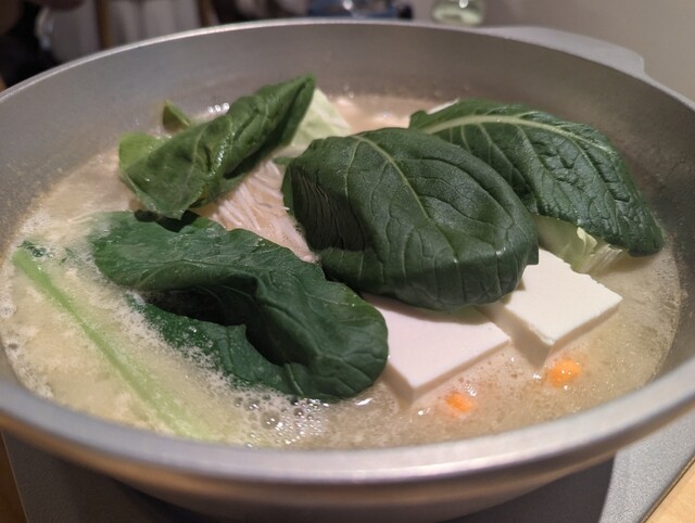 その後お野菜やお豆腐をいただきますが、どれも鶏の出汁をすって最高に美味い。