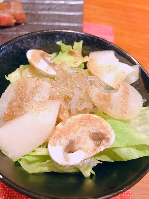 サラダは和牛はもちろんだけど、生マッシュルームと春菊の香りがとても良くて美味しい❤
