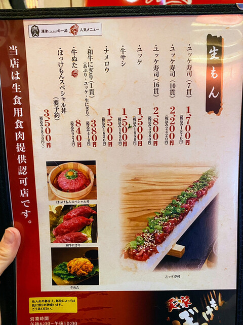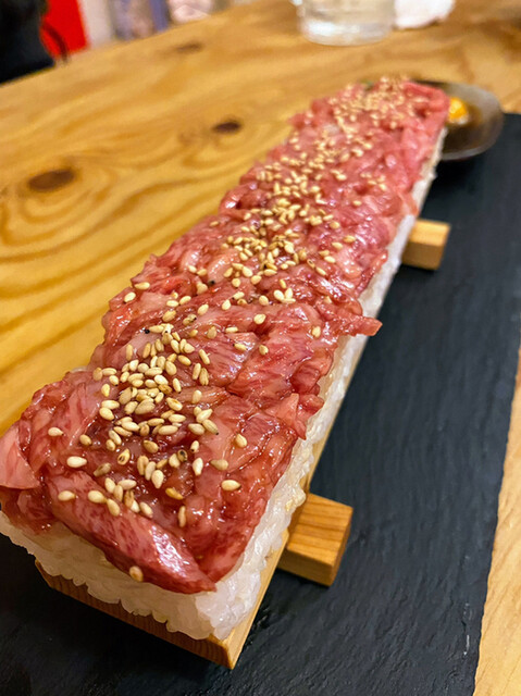 そして最後に〆のユッケ寿司(7貫)ネギ抜きでこちらは生食用食肉提供許可店なのでユッケ以外にも生肉があり、私にとってはパラダイス✨✨✨