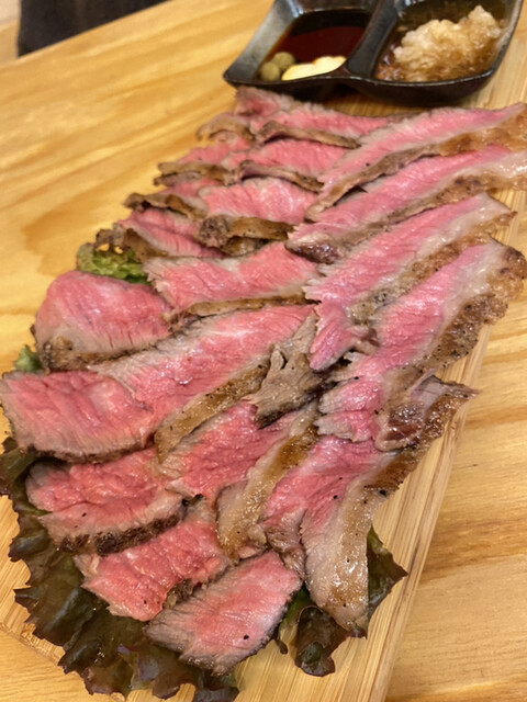 牛えんがわ和風ステーキは程よいレアさで肉が柔らかくてあっさりしていてとても美味しい♥️
