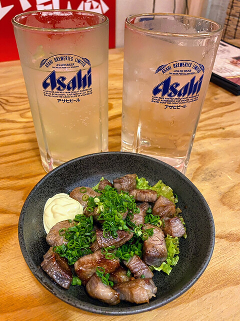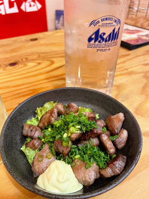 自家製干し肉は硬過ぎず柔らかくて旨みが濃厚✨そのままでもマヨネーズつけても一味マヨでも最高‼️やみつきホルモンはホルモンがプリプリ❤熱いうちに食べてください。オオカクは柔らかくて歯ごたえもあって美味しい。大好き。