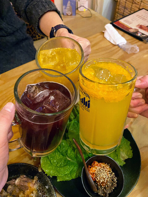 ノンアルで乾杯しつつ、炙りトロカルビ、テルポン、キモしゃぶ、ユッケ寿司、牛えんがわ和風ステーキ、肉ぬた、串もの、ガーリックライスなどなど好きなだけオーダー♥️