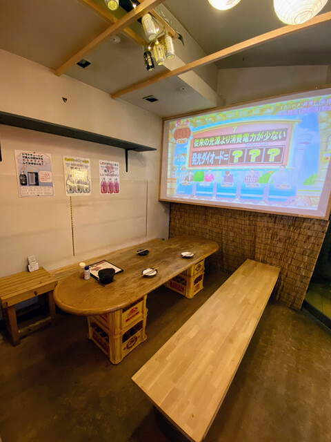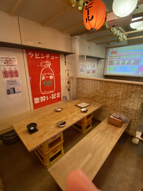 こちらは6人くらい座れるテーブル席が3つ。席の間には仕切りがあり、コロナ感染症対策でビニールカーテンで仕切れるようになっています。