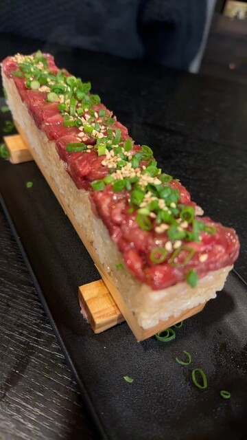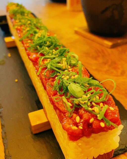 ユッケ寿司は映えるし美味しいし。