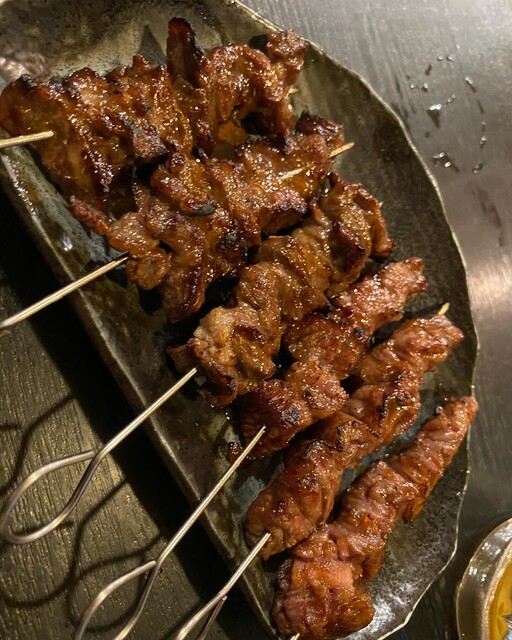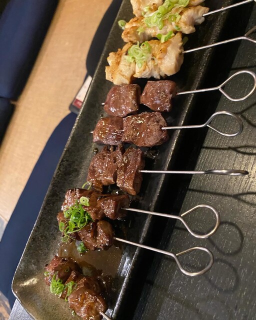 私がほぼマストで頼むものは、炙りトロカルビ、テルポン、キモしゃぶ、ユッケ寿司、牛えんがわ和風ステーキ、肉ぬた、串ものなのですが、今回も間違いないこれらをオーダー。