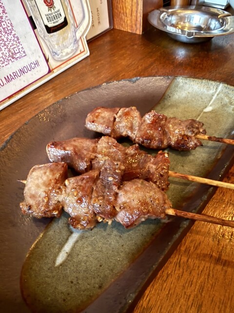 豚串も香ばしくてジューシーで美味しい飲み物がススム‼️