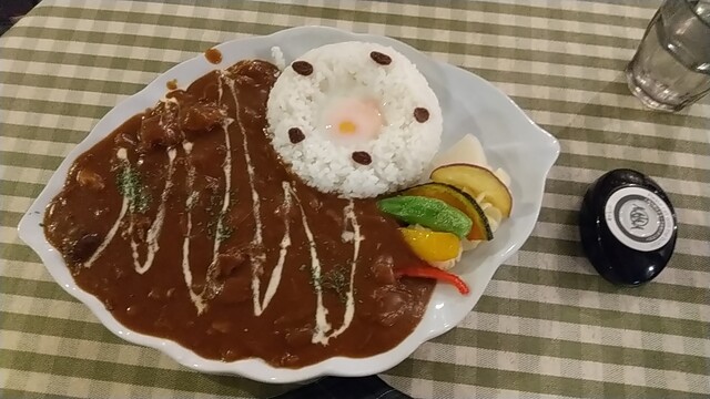 ゴロッと大きなお肉が3~4個あります。丸く型どったご飯の中にあるポーチドエッグ、付け合わせは素揚げした野菜が可愛く乗せられて、無言で食べきってしまいます。