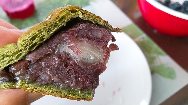よもぎたっぷりで風味あるパンに粒あん