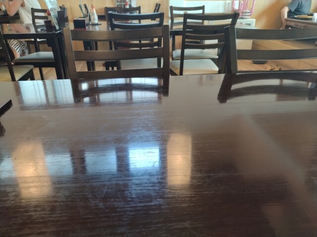 入り口こそ変わりましたが、中の作りはほとんど一緒で、カウンター席やテーブル席、座敷、厨房、自動精算機等前と同じ配置です。