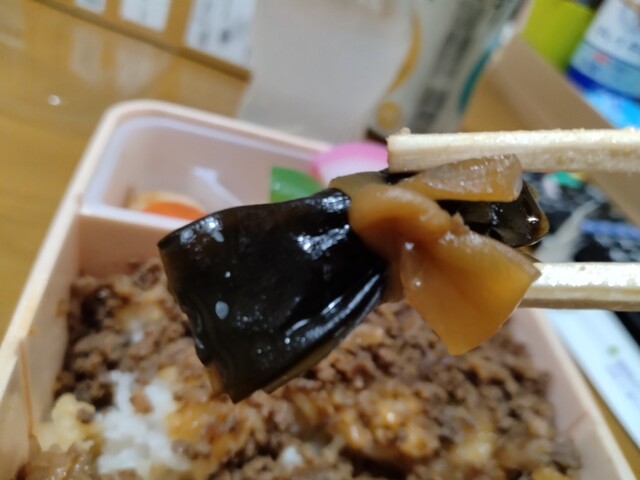 甘辛い牛肉とそぼろがとても美味しく、ご飯が凄く進みます。