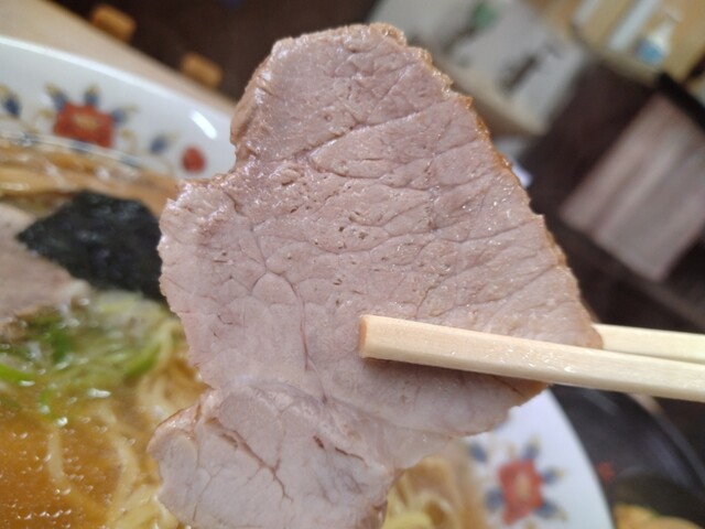 モモほうの部位でしょうか?小ぶりですが、厚めのチャーシューが6枚ほど入っていて、しっかり味の付いたものでして、弾力を少し楽しみながら食べました。