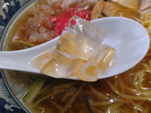 ただスープを冷やしただけではかなり油の塊が浮くと思いますが、植物系の油を使ったたりかなり工夫されてるそうで、ラーメンのスープを冷たく再現する技術は素晴らしいです。