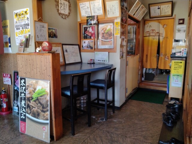 駐車場は特に無く羽前小松駅の空き地部分を駐車場として利用できるようでしたので、そちらに停めて入店です。
