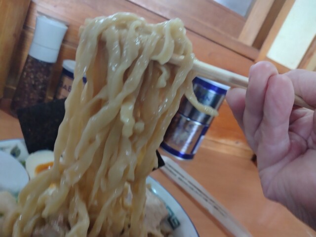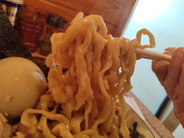 この店の麺の特徴はゴワゴワワシワシの強烈なねじれが加わった極太麺。