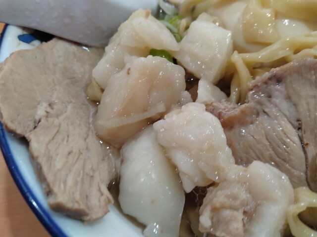 噛み締め系のモモチャーシューも程よい塩加減で細切れチャーシューと一緒に麺とスープに最高の相性かと思います。