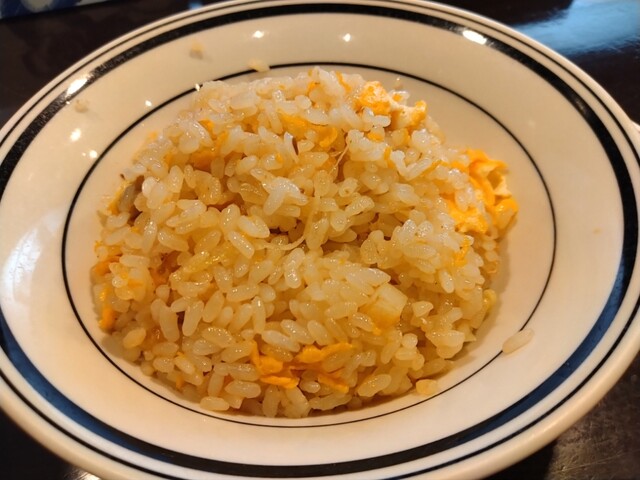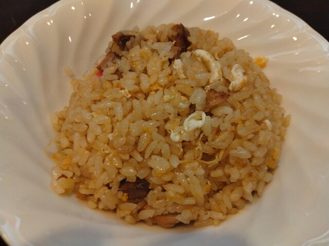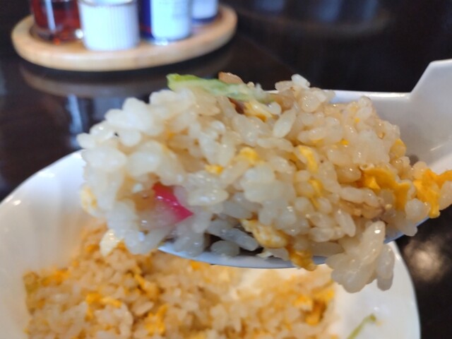 そのチャーシューが入る半チャーハンもまた旨い。チャーシューの塩味が絶妙な関係で、炒め具合も最高です。