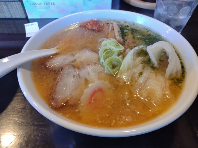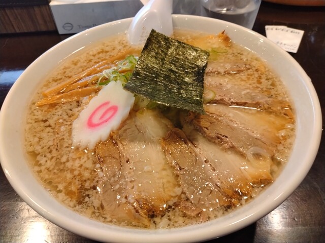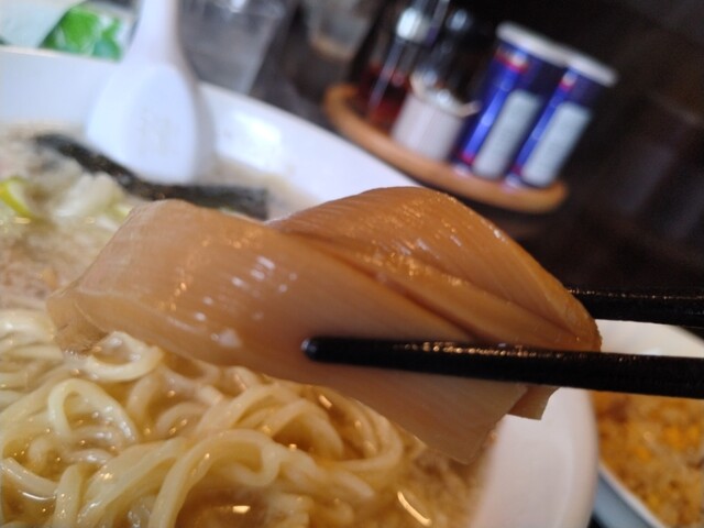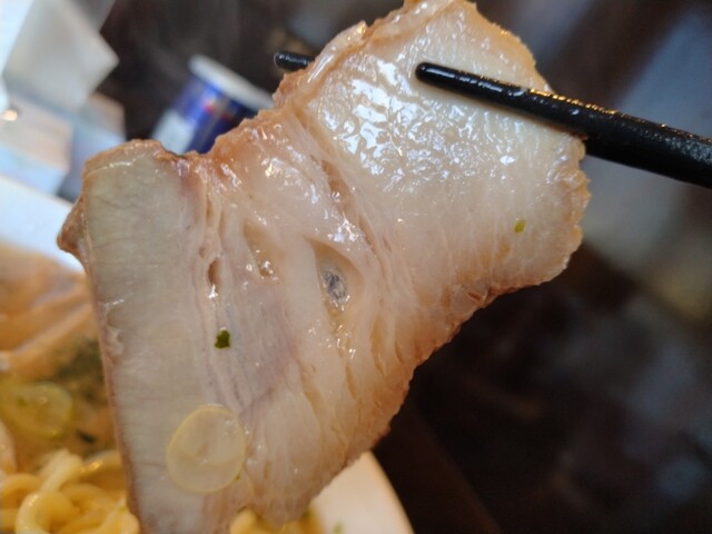 あっさり塩スープに背脂チャッチャ、だんだんと背脂とチャーシューの旨味が溶け込み、後半はとてもコクのあるスープになりとても美味しいラーメンです。