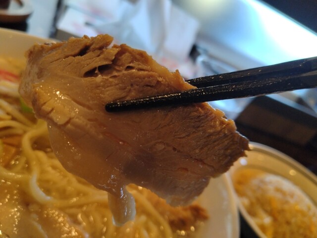ちょっとしょっぱめのチャーシュー。バラよりモモの自分ですが、ここのは大好きでして、旨いですね~。