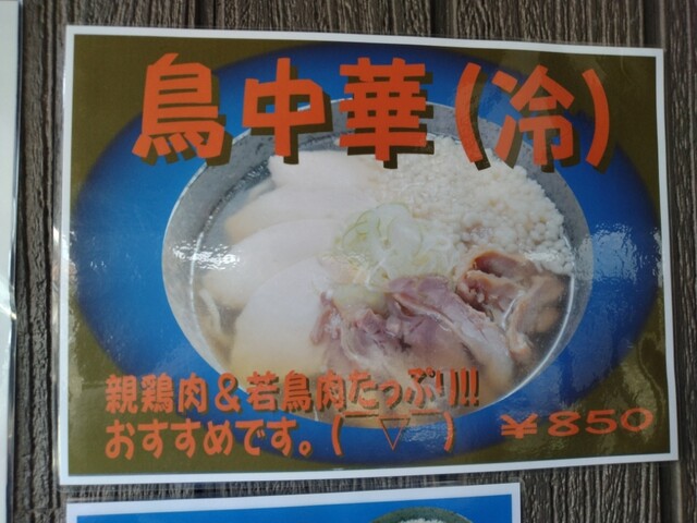 入口に貼ってある写真でも大きく目に付いた鳥中華(冷)。