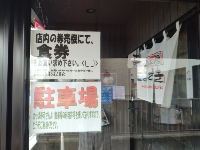 お店の前の駐車場は満車ですが、向かいのカッパ寿司さんの広い駐車場もOKなので余裕で駐車。