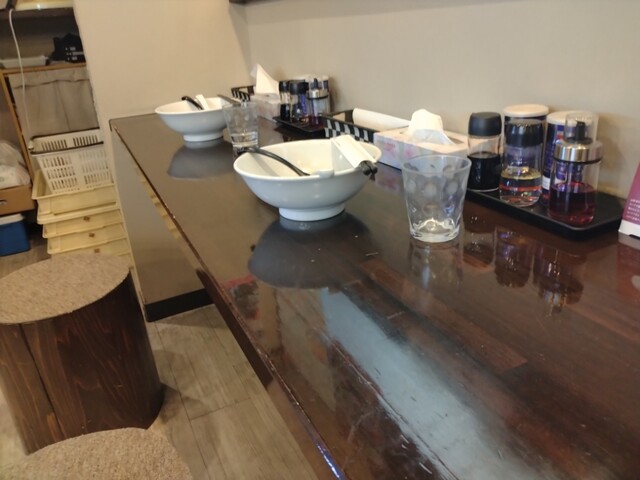 券売機でまず食券を買うと店員さんが席を用意、食券を渡し、指定された席に着席、半券をもらい待ちます。