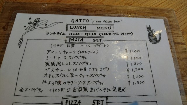 本日は、ミートソースパスタと自家製ハムのサラダピザのセットにしました。
