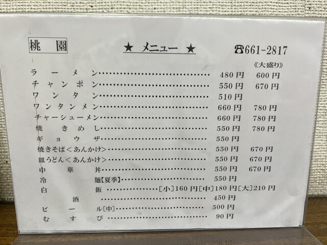 桃園(枝光、スペースワールド/ラーメン、ちゃんぽん、餃子)