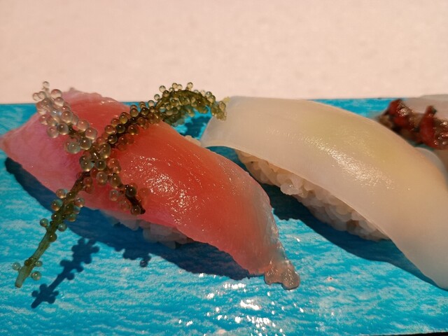 美味しい泡盛と、美味しい上に美しい握り寿司を堪能しました。