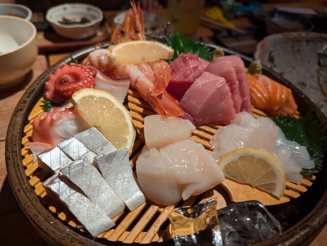 赤武や鳳凰美田なんかを味わいつつ海鮮を頼むのが二重丸。