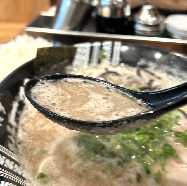 スープに浸して完璧な〆 丼底に残った骨粉混じりのスープまで完飲しても〜た