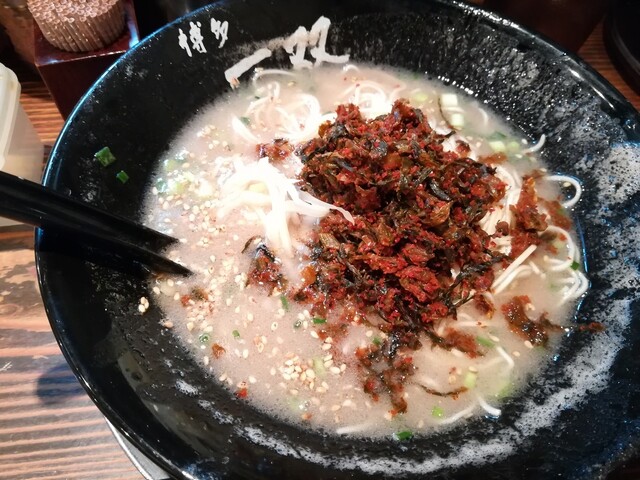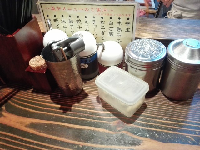 卓上の生姜+辛子高菜を追加すると、絶妙なアクセントとなり、また美味い。