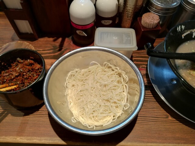 一口飲むと、やっぱり美味い。美味すぎる。豚骨の旨味がガッツリ効いいるが、マイルドで飲みやすい。替玉しないはずが、無意識に注文してしまった。