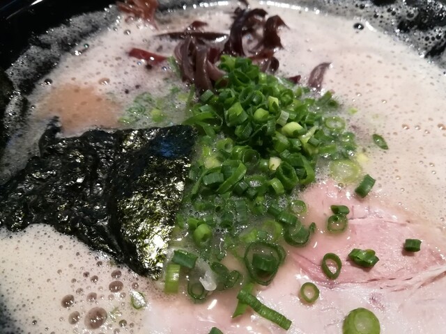 バリカタで注文したため、5分も経たずにラーメン登場。いつもよりスープは泡立っている。