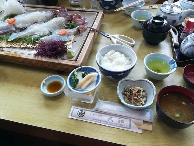 おまけに、この日は、海がしけっていてイカが不漁のため、メニューを変更していると張紙している店もあった。