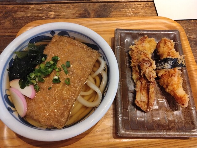 コシのあるエッヂの立った綺麗なうどんに、ほんのり優しい甘さのおいなりさん