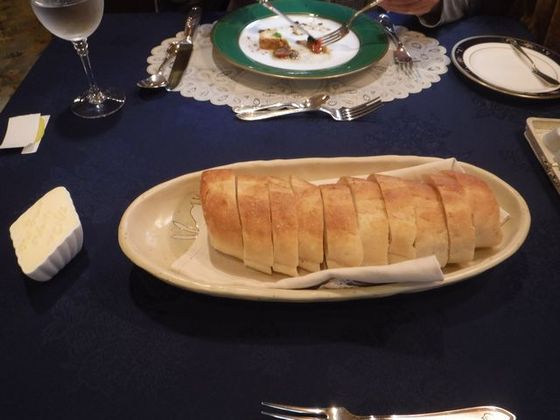 お次はフランスパンが丸ごと1本、たっぷりのバターとともにででんとw