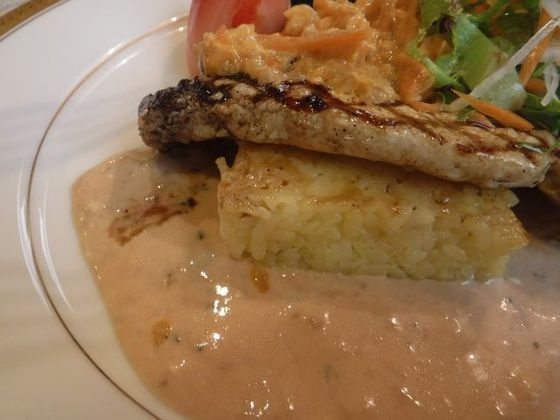 本日のメインは 鯖と鶏のムネ肉にサフランライス♪