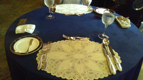 案内されたテーブルのうえには重厚感のある銀のカトラリーがズラリと並んでます。