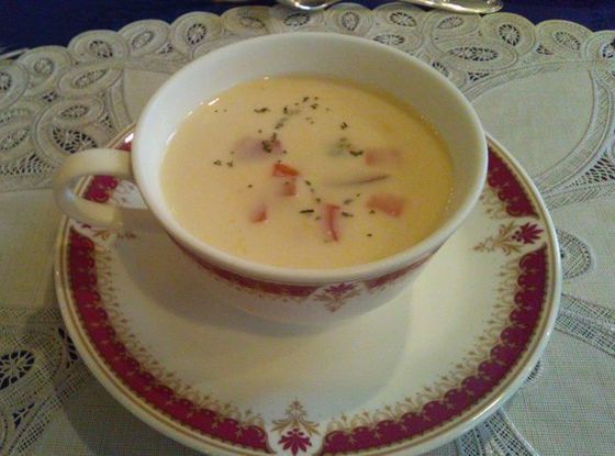 冷えたジャガイモのスープ。 不思議な甘みがあとを引きます♪