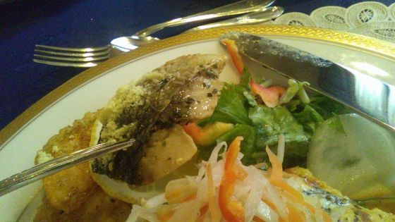 たしかフレンチ料理ということで、もちろんお箸も持ってきてませんから、不器用にナイフとフォークで切って