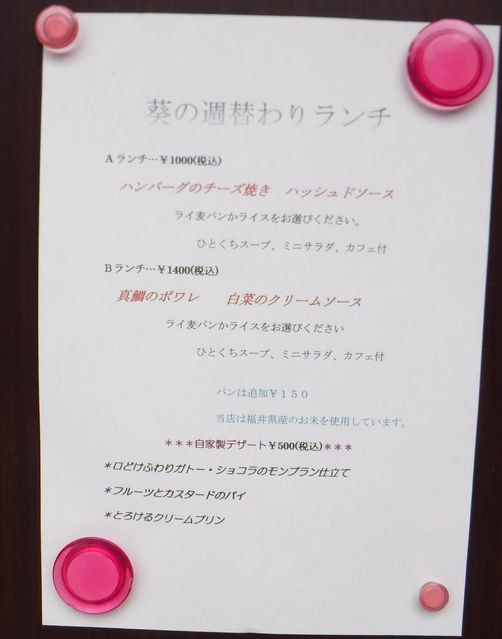 Aランチが税込み1000円 。 葵さんでこの価格のランチが食べられるとは正直驚きました。